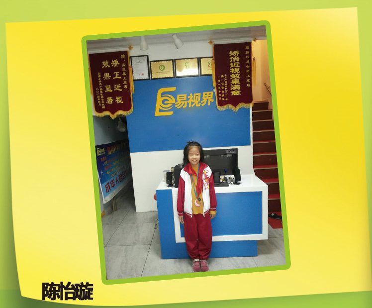 陳怡璇9歲近視性弱視,矯正前裸視左眼0.5右眼0.5雙眼0.6,矯正后裸視左眼1.0右眼1.3雙眼1.2,六個(gè)療程后視力防護(hù)鞏固。