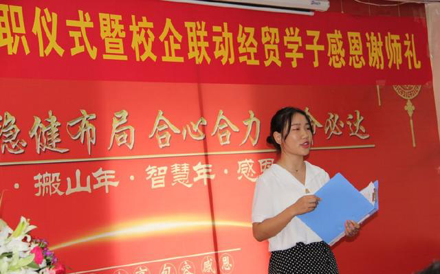 河南經(jīng)貿(mào)職業(yè)學(xué)院會(huì)計(jì)學(xué)院白石書記致辭中說,新員工要像新學(xué)生一樣有“六新”:新起點(diǎn)、新環(huán)境、新伙伴、新展示、新評(píng)價(jià)、新發(fā)展;同學(xué)們找到了人生的知名份工作,良好的開始是成功的捷徑,走出校園這所大學(xué),跨進(jìn)更大的校園,這就是社會(huì)大學(xué),期望同學(xué)們繼續(xù)堅(jiān)持學(xué)習(xí),要有終身學(xué)習(xí)的心態(tài);對(duì)家人、對(duì)學(xué)校、對(duì)社會(huì)要有一顆感恩之心。最后,他勉勵(lì)同學(xué)們要把握好機(jī)會(huì),無論在什么崗位,都要堅(jiān)持走下去,要沉淀下來,唯有堅(jiān)持,才能收獲驚喜。